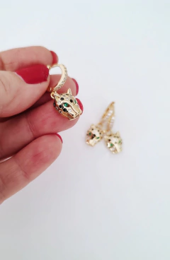 Increíble par de aros bañados en oro 18k con cubics cristal y verdes, tanto en el dije como en la argollita.
