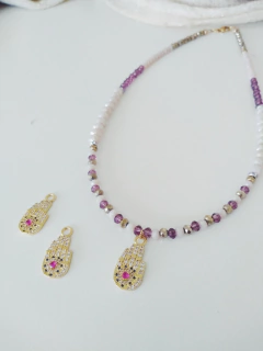 collar corto de cristales dorados y rosas con un dije principal que es un sueño