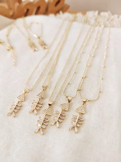 El huesito está bañado en oro y cubics Zirconias, mide 2.6cm de largo