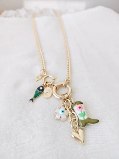 Collar estilo boho chica, de 55cm hecho en cadena bañado en oro 18k, con dos estilos de cierre marinero y los dijes más hermosos y en tendencia que vas a ver.