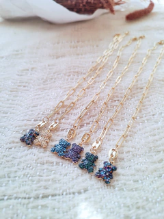 Hermosa pulsera de cadena clip bañada en oro 18k con osito bañado en oro 18 con cubics de diferentes colores. La pulsera mide 17cm y el osito mide 1 cm